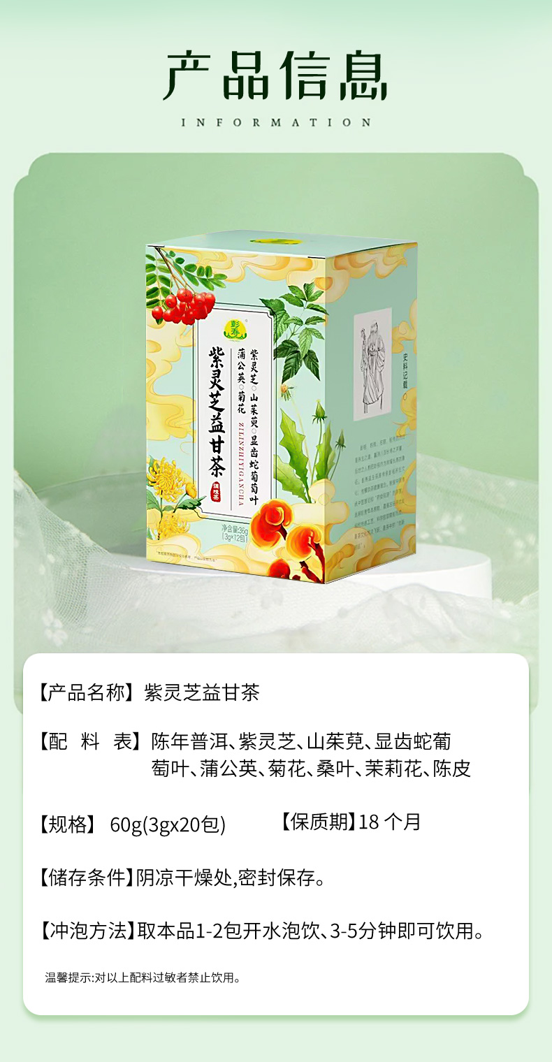 >> 新品系列 >> 紫灵芝益甘茶zlz001(60g)
